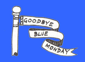 The Goodbye Blue Monday flag is simply a swallowtail streamer with its the wording written upon it.